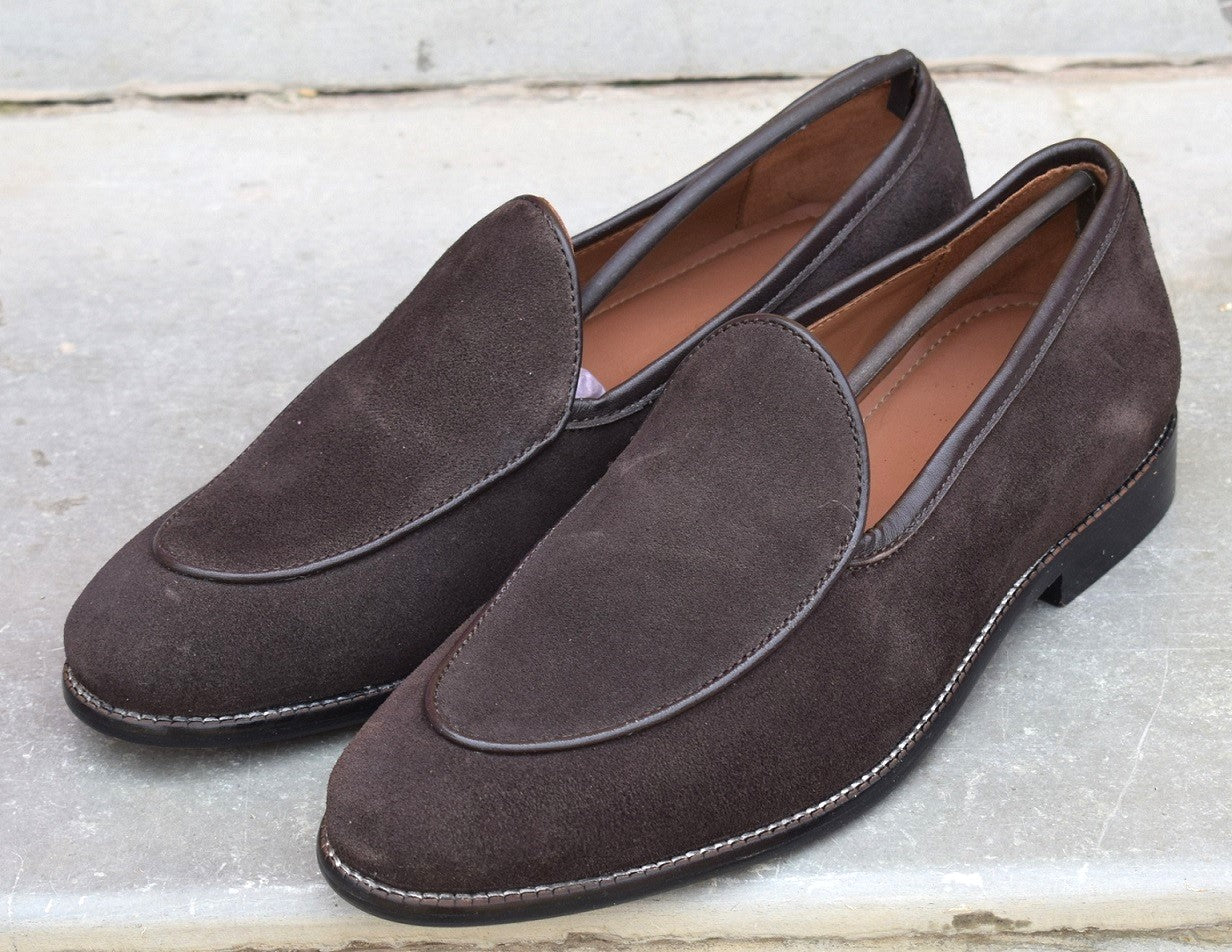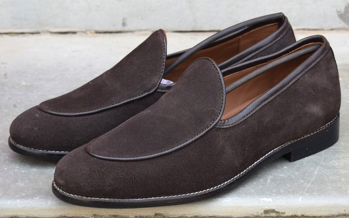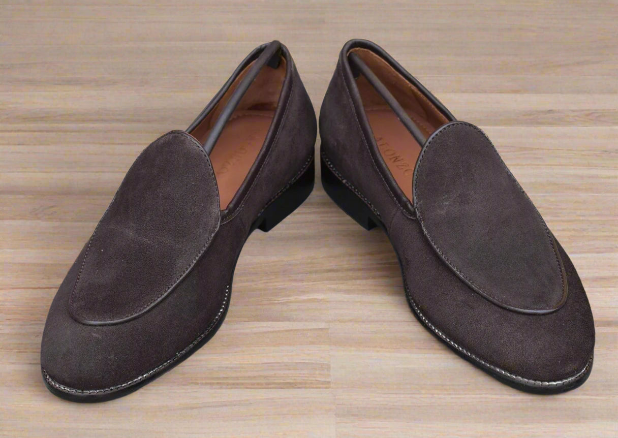 Crafted with precision, these Adam Handmade Brown Suede Loafers combine premium suede leather with expert craftsmanship. Their rich brown hue and soft texture offer timeless elegance, while the handmade construction ensures durability and a comfortable fit. Ideal for those seeking refined style and lasting quality in their footwear collection.